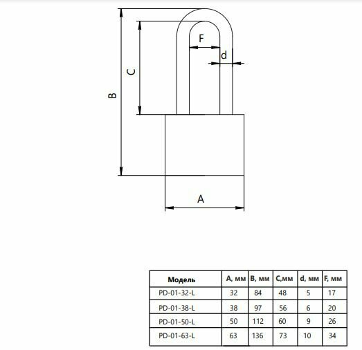 | Внутренняя высота дужки (в закрытом состоянии) | 56.000 |