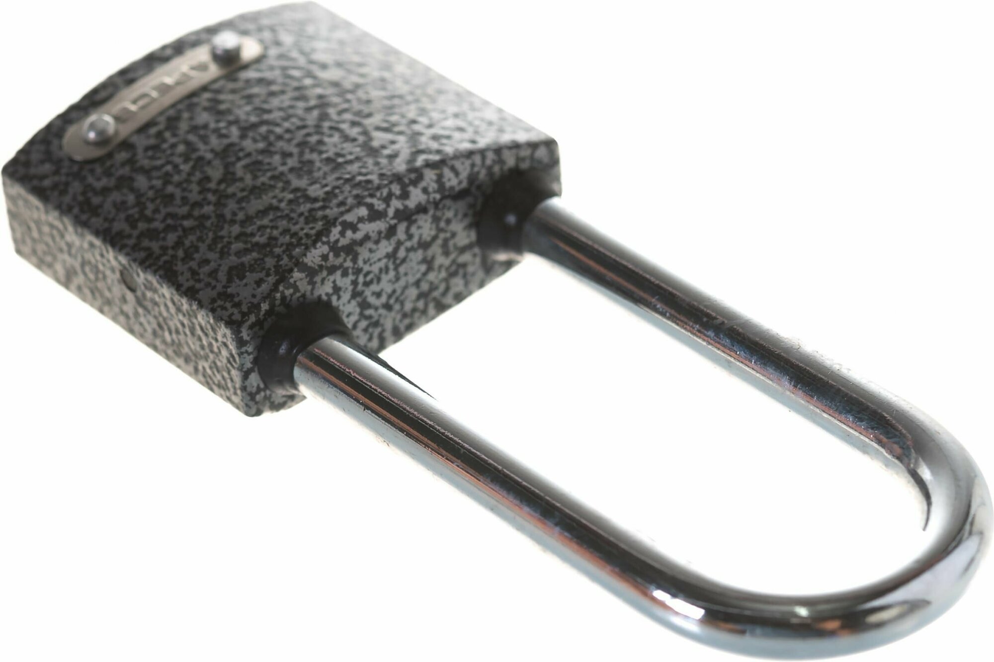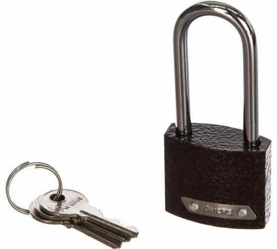 Замок предназначен для запирания дверей, снабженных дверными проушинами. Замок автоматический, т.е. закрывается без использования ключа. В комплект входят 3 стальных ключа с металлической головкой.