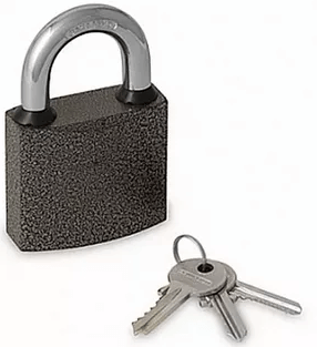 Замок навесной дисковый общего применения. Материал корпуса - сталь. Закаленная стальная дужка диаметром 7 мм;