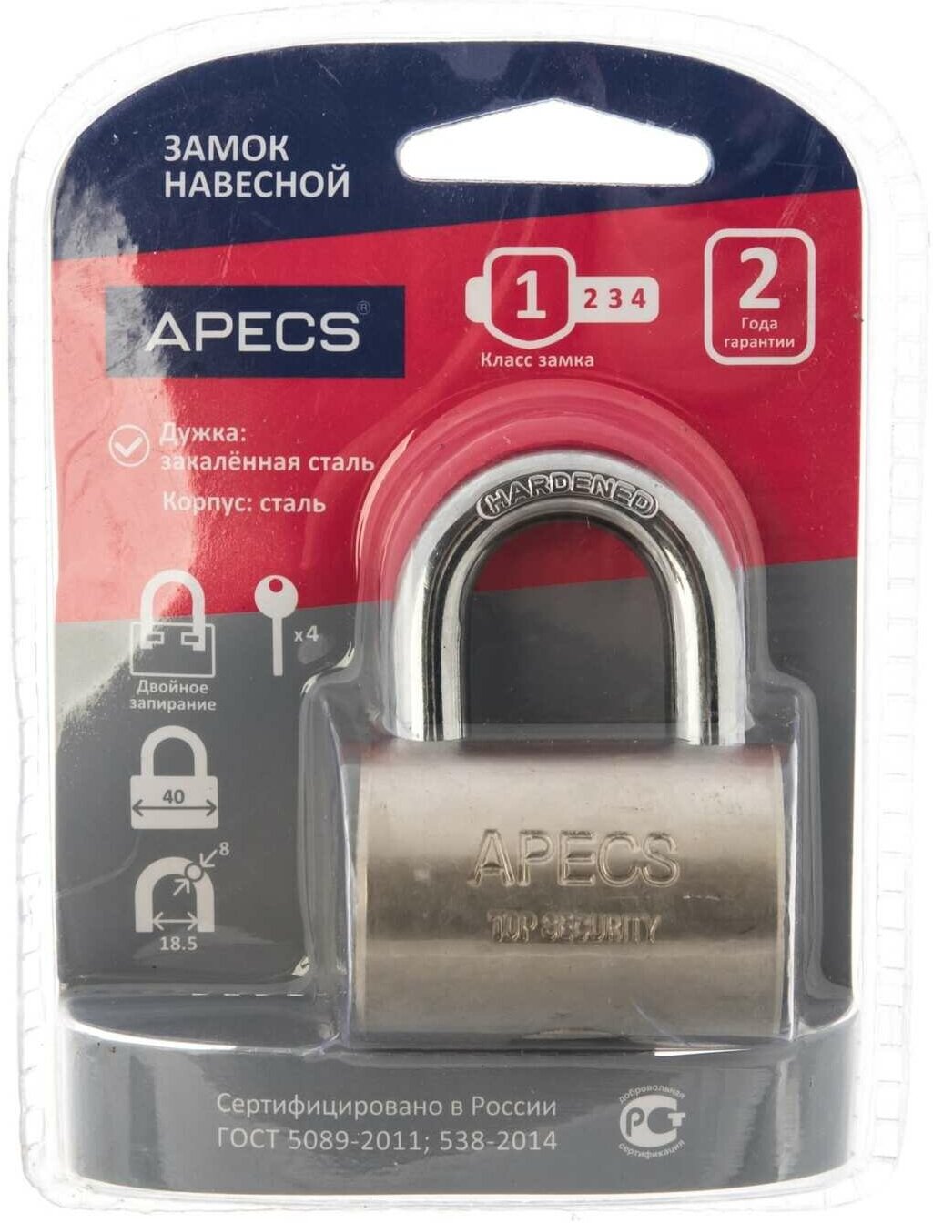 Модель: Замок висячий Apecs PDS-32-40 хром