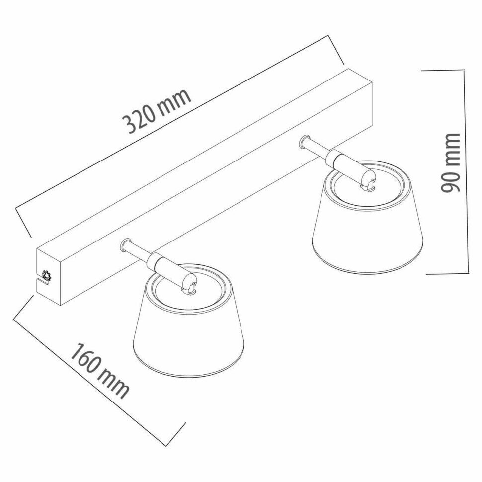 Данная модель отличается высоким качеством исполнения и стильным дизайном. Он смотрится очень благородно и естественно. Поворотные плафоны закреплены на металлическую пластину. В качестве источника света выступают светодиоды с теплым белым светом, скрытые за матовым рассеивателем. Он мягко распространяет свет, создавая уютное освещение. Лампы входят в комплект.