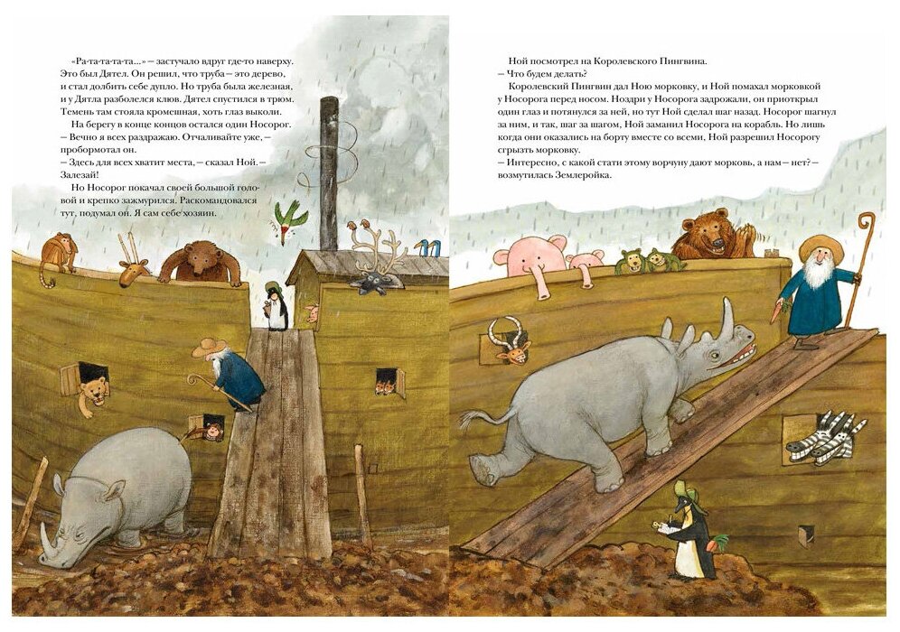 Дождь лил как из ведра, и Ной торопился поскорее собрать зверей на своем корабле. Вот только Носорог постоянно ворчал и жаловался, что его никто не любит. Так оно поначалу и было, но тут случилось кое-что непредвиденное, и Носорогу удалось доказать, что он настоящий герой.