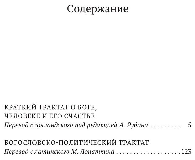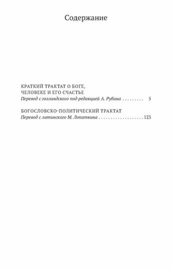 В настоящее издание вошли два знаменитых сочинения Спинозы — «Краткий трактат о Боге, человеке и его счастье» и «Богословско-политический трактат», которые, наряду с «Этикой», занимают центральное место в наследии философа.