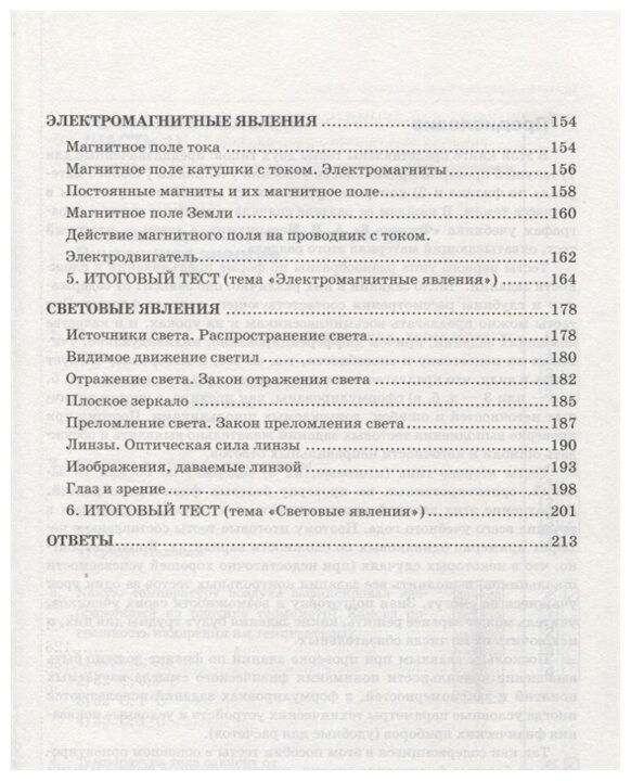 Данное пособие полностью соответствует федеральному государственному - образовательному стандарту (второго поколения). Пособие содержит тесты для проверки усвоения и понимания восьмиклассниками учебного материала по всем темам, изложенным в учебнике А. В. Перышкина «Физика. 8 кл.», а также шесть контрольных итоговых тестов. Включенные в пособие тесты, соответствующие каждому параграфу учебника, позволяют своевременно выявить недостатки в знаниях учащихся и индивидуализировать процесс обучения физике. Приказом № 729 Министерства образования и науки Российской Федерации учебные пособия издательства «Экзамен» допущены к использованию в общеобразовательных учреждениях.