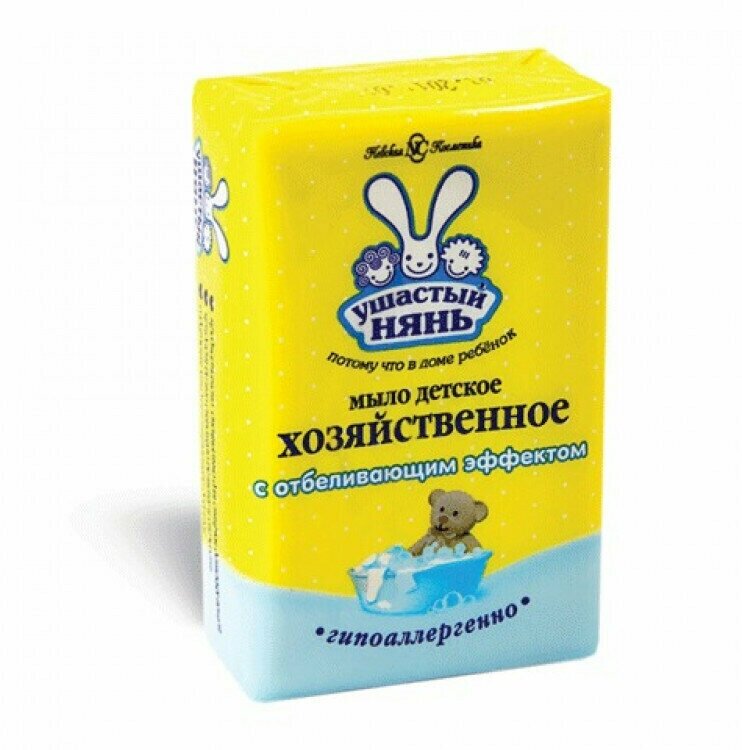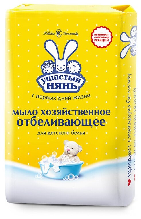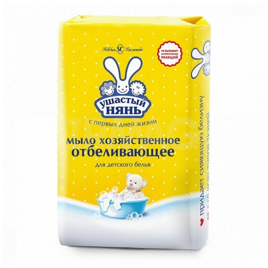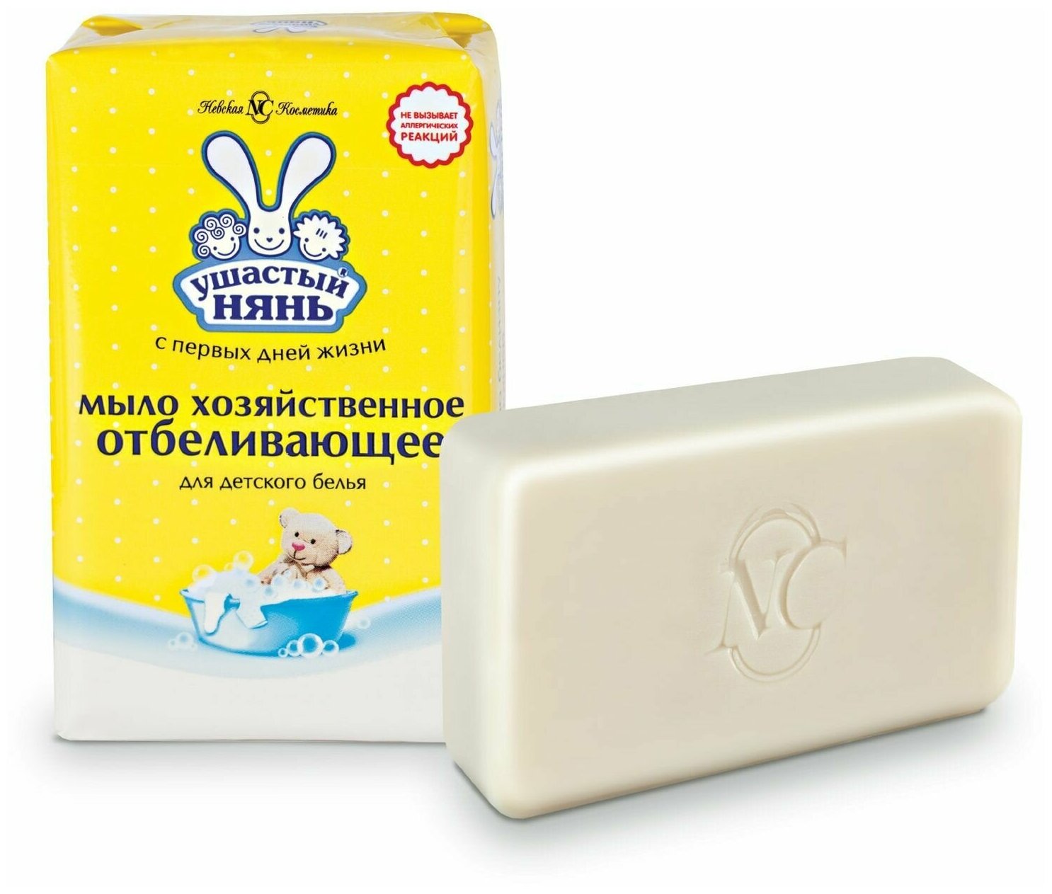 Мыло хозяйственное Ушастый нянь от компании Невская косметика покупаю, потому что дома есть дети. Перед стиркой школьных белых рубашек, натираю этим мылом манжеты и воротники, с которыми может не справится обычная стирка в машинке. И всегда получаю прекрасный результат, рубашки чистые и белые. Так что отбеливающий эффект присутствует. Рекомендую и буду покупать ещё.