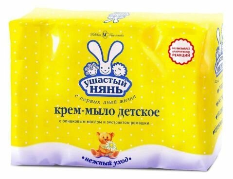 Детское крем-мыло «Ушастый нянь» является продолжением серии детской гипоаллергенной косметики, в которой уже присутствуют кремы, шампуни, гель для душа, шампунь, и другие продукты, которые помогают маме ухаживать за кожей и волосами малыша. Крем-мыло отличается от обычного туалетного мыла наличием в его составе крема с увлажняющими компонентами, который делает уход за кожей более мягким, нежно очищает и не сушит кожу. Оливковое масло и экстракт ромашки способствует питанию кожи и снижают вероятность появления аллергических реакций. Продукт производится из высококачественного натурального сырья. Для получения более подробной информации, а также узнать мнение эксперта, настоятельно рекомендуем ознакомиться с данной статьей .