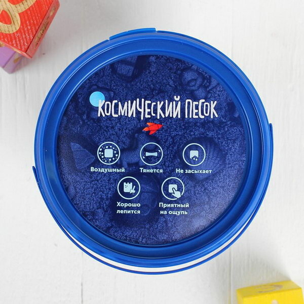 Космический песок – универсальный набор для творчества для детишек от 3-х лет. В составе космического песка 98% настоящего кварцевого песка и 2 % щепотки магии :))). А если быть точнее смесь кварцевого песка, силикона с антисептиком, что и придает песку такую пластичность и мягкость. Экологически чистый космический песок совершенно безопасен для детских пальчиков! Он пластичный, воздушный и приятный на ощупь, с его помощью можно слепить все, что придет в голову как ребенку, так и взрослому.