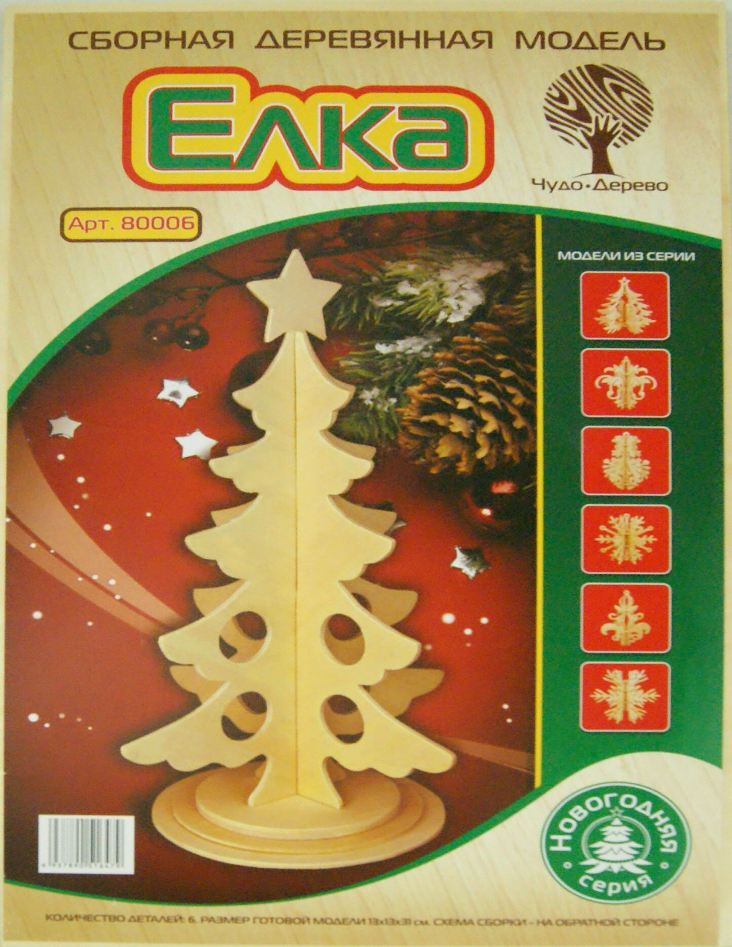 Сборная деревянная модель Wooden Toys Новогодняя елка (80006)