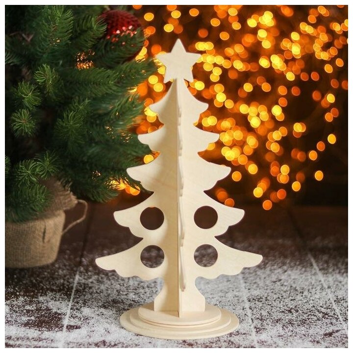 Сборная деревянная модель в виде новогодней елочки украсит интерьер к зимним праздникам! Собрать ее получится даже у дошкольника! Оригинальный аксессуар из дерева можно расписать гуашью, темперой или акрилом и декорировать аппликациями, пайетками, бусинами, фетром. Фантазируйте и создайте свой необычный символ Нового Года и Рождества! Для упрочнения креплений рекомендуется использовать клей ПВА.