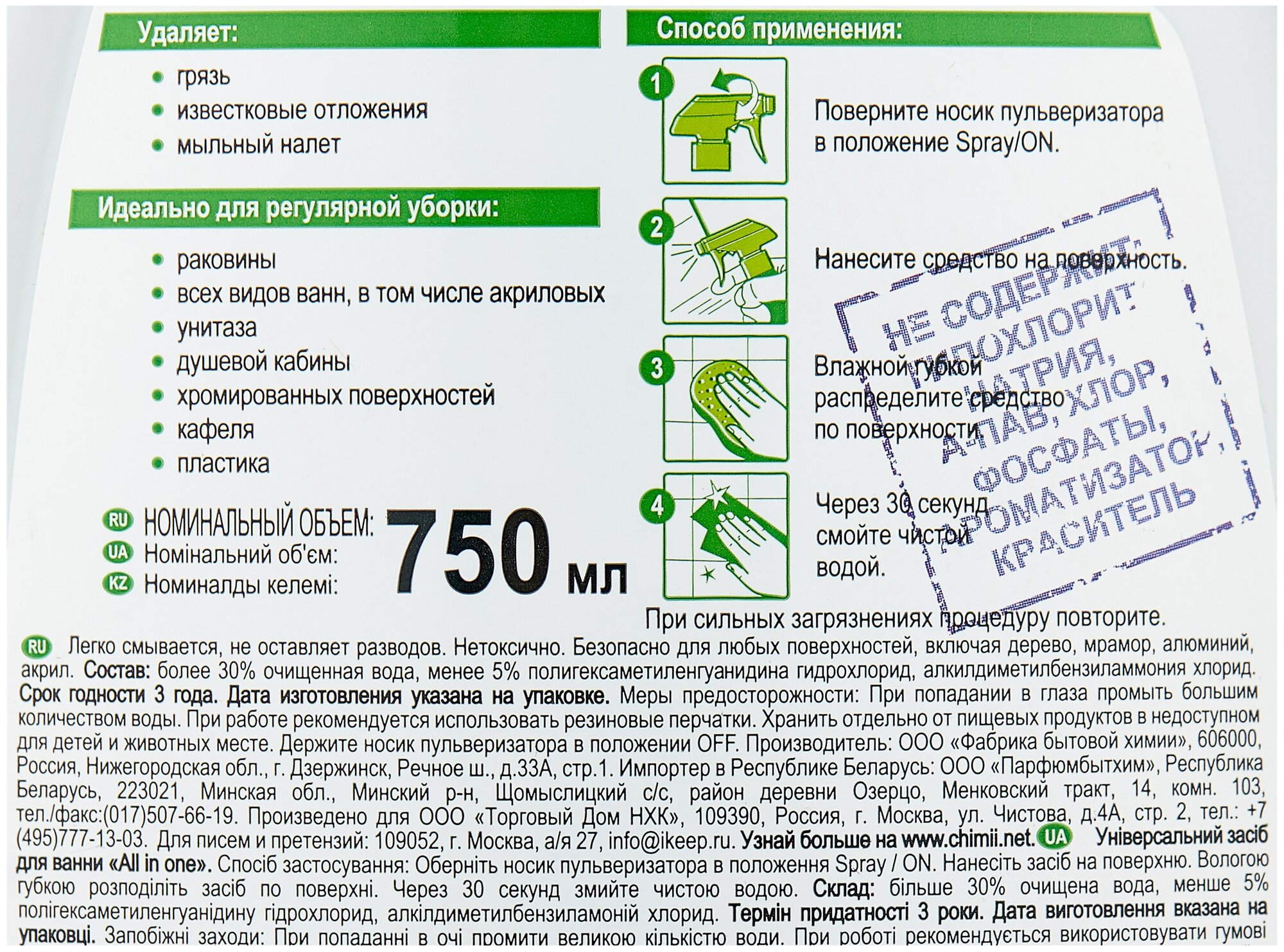 Средство для ванной комнаты iKeep! ALL in one с триггером 750 мл (БТ002)