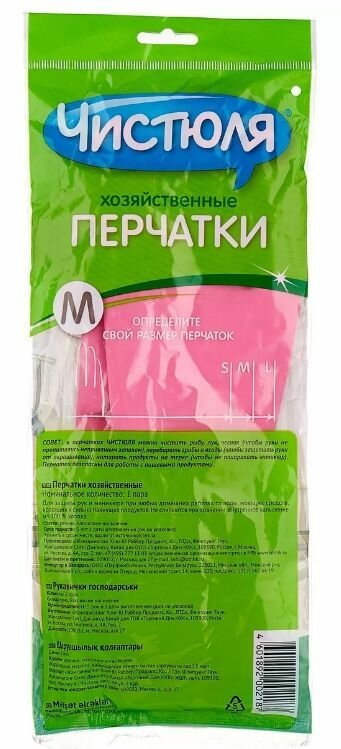 Перчатки хозяйственные Чистюля резиновые размер: M хозяйственные размер М