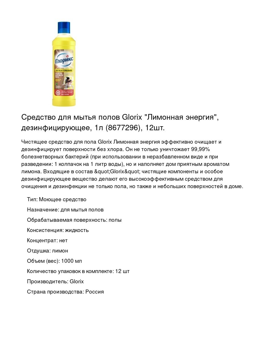 Тип товара: Моющее средство для пола