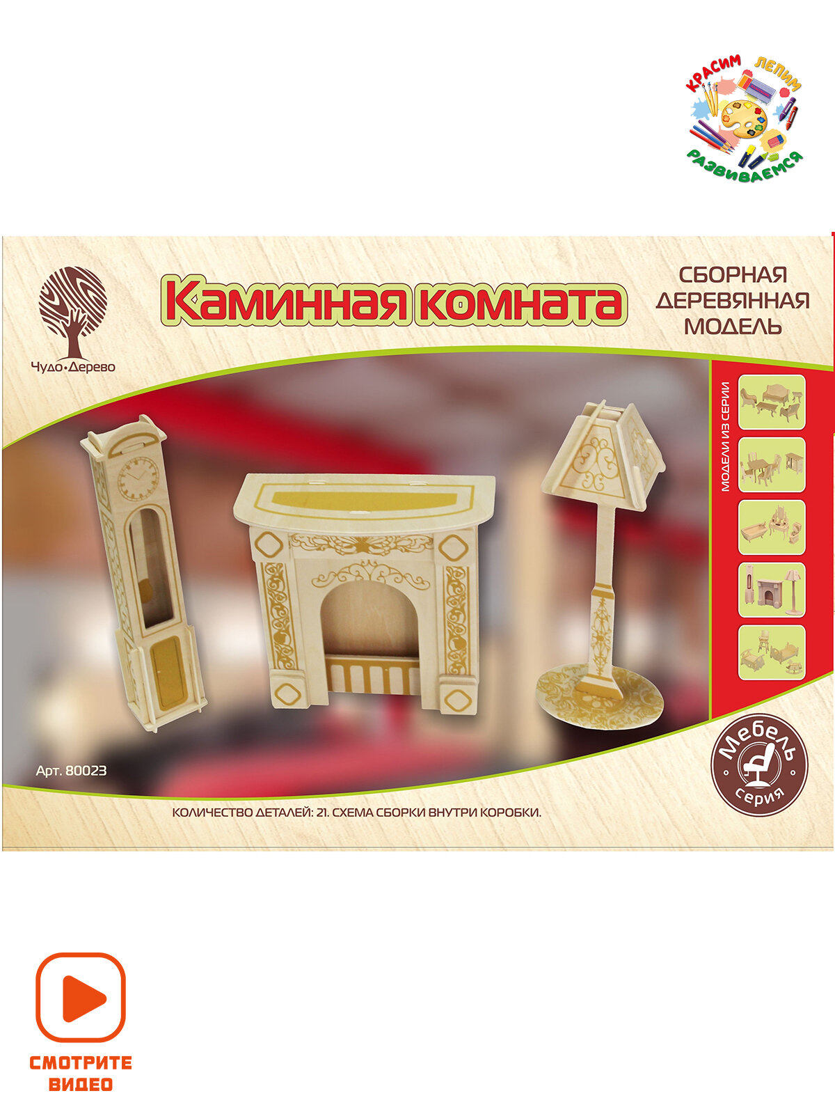 Сервис сравнения цен СкидкаГИД предлагает сравнить цены на товар «Сборная деревянная модель Wooden Toys Мебель для кукол - Каминная комната (80023)»