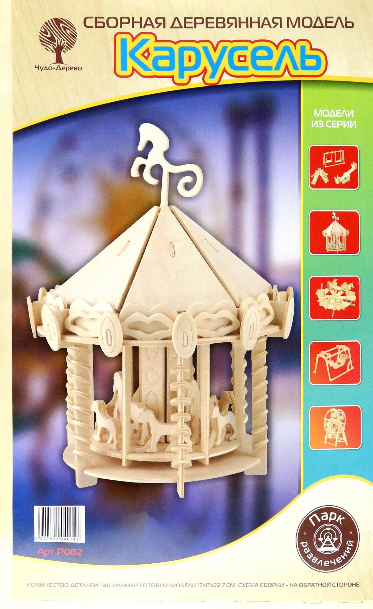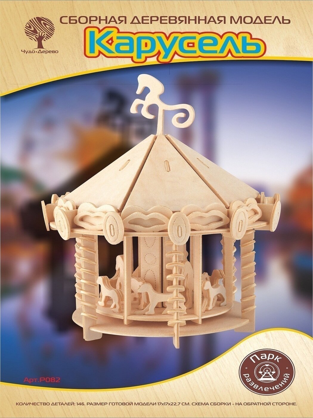 Сборная деревянная модель Wooden Toys Большая карусель (P082)