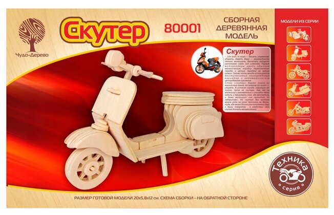 Сборная деревянная модель Wooden Toys Скутер (80001)