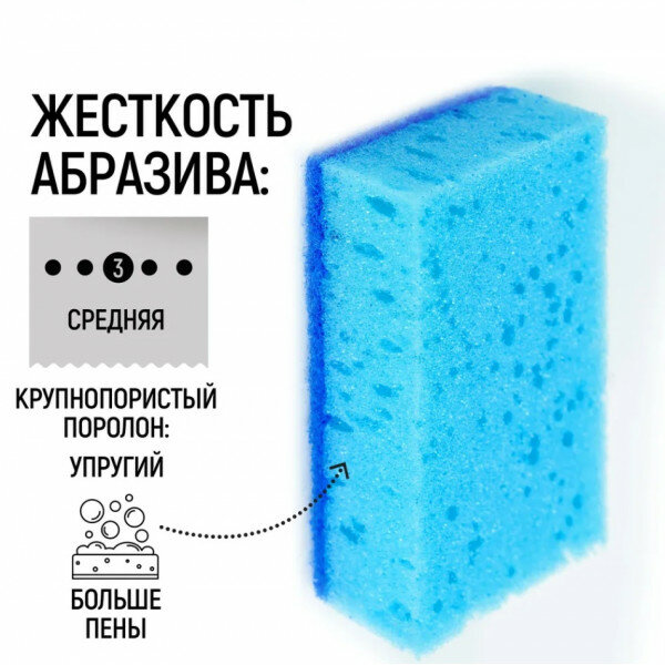 Одна из самых больших губок на рынке – размер . Синий суперпрочный абразив NORD: более плотный, более износостойкий. Специальный поролон ЕВРО: более упругий, крупнопористый (повышенное пенообразование).