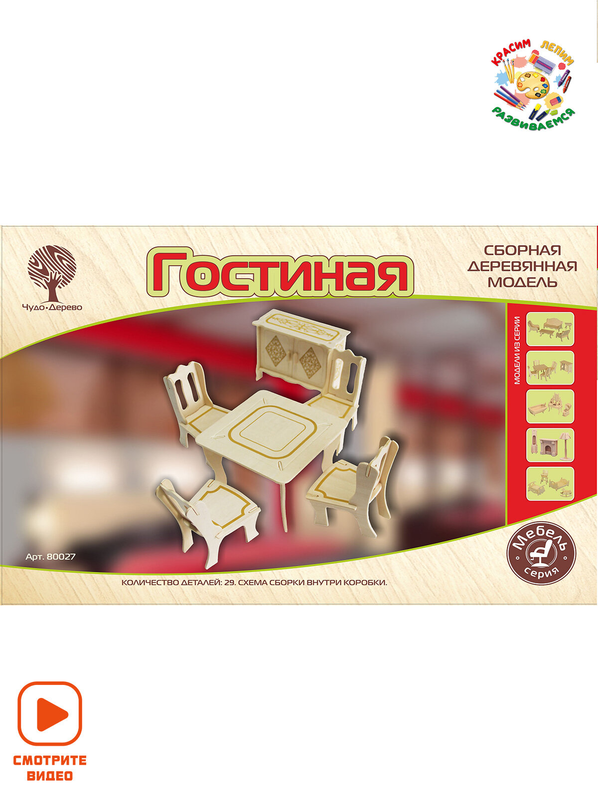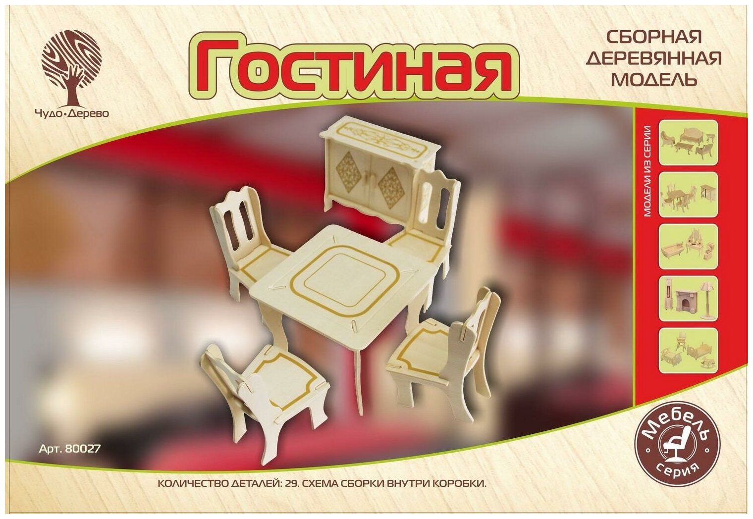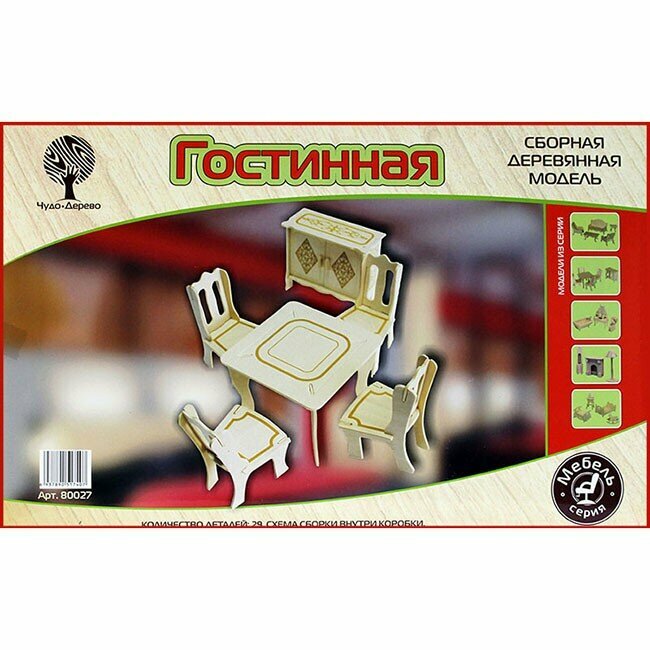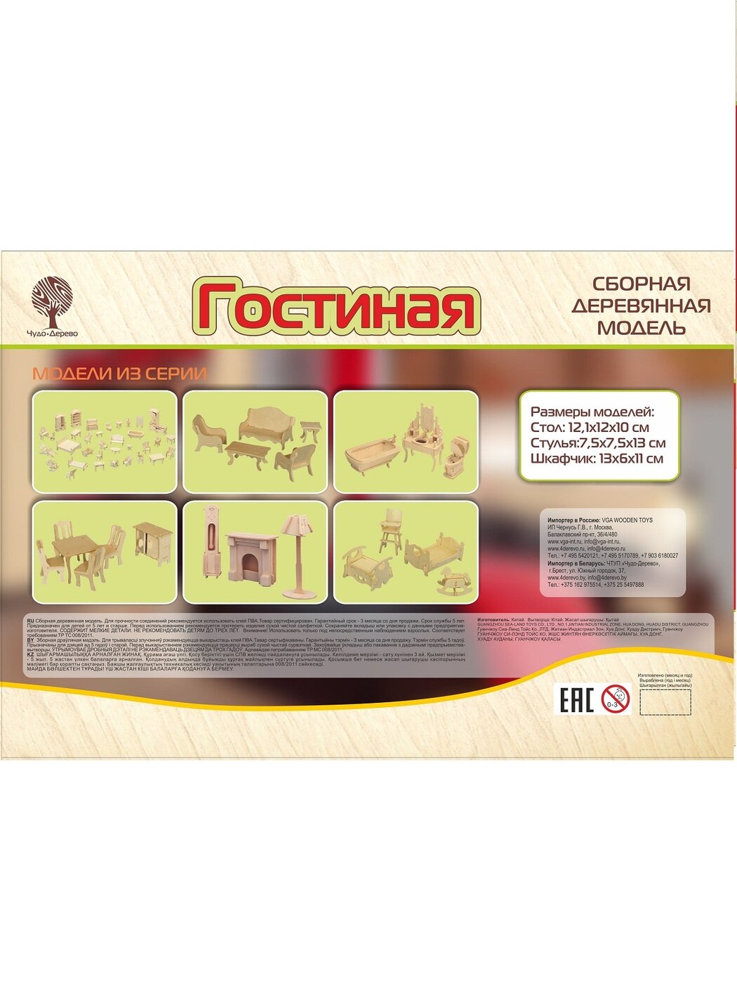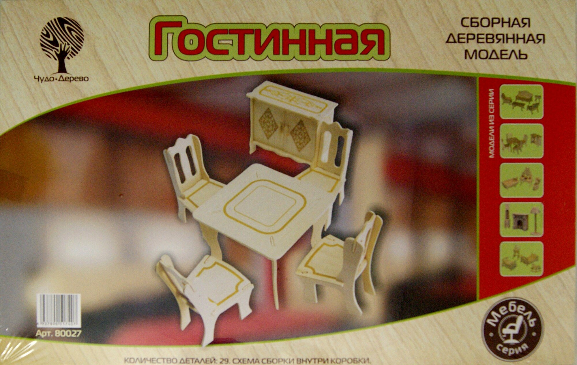 Сборная деревянная модель Wooden Toys Мебель для кукол - Гостиная (80027)