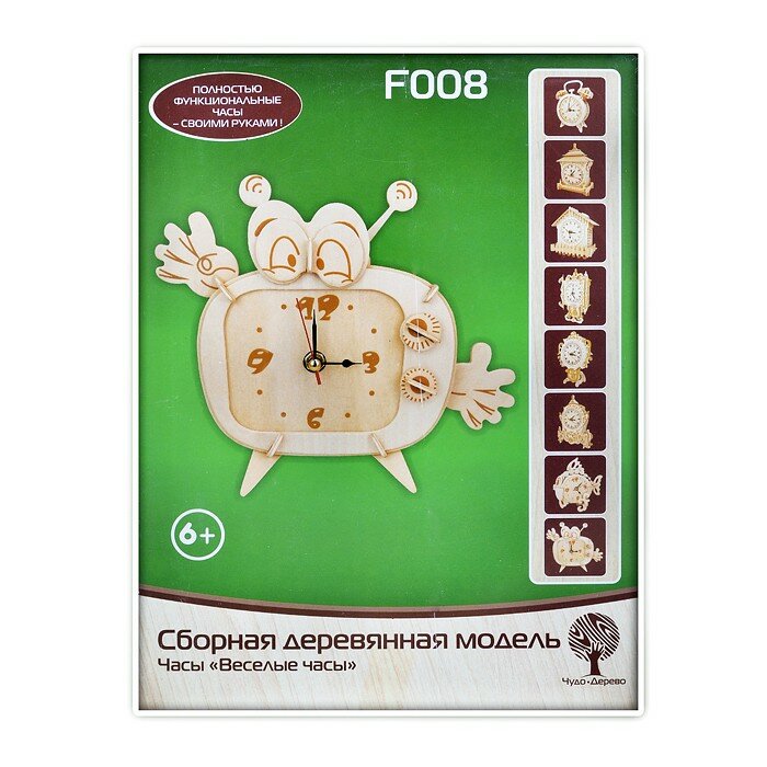 Сборная деревянная модель Wooden Toys Веселые часы (F008)