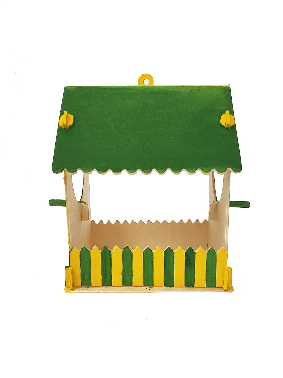 Чтобы птицы всегда могли найти пропитание, особенно в холодные зимы, и радовали своими песнями под окном, можно прийти им на помощь и смастерить кормушку. Изготовление кормушки — не только благое дело, но и увлекательное, как любой творческий процесс. А с этим набором еще и простое — не надо строгать и выпиливать, достаточно только соединить детали и проклеить их, чтобы повысить прочность конструкции. Сверху (но не внутри!) кормушку можно покрыть лаком или краской для защиты от влаги (клей и краска в комплект не входят).