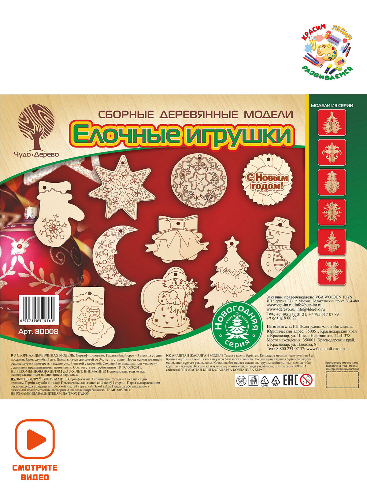 Сервис сравнения цен СкидкаГИД предлагает сравнить цены на товар «Сборная деревянная модель Wooden Toys Набор елочных игрушек (80008)»
