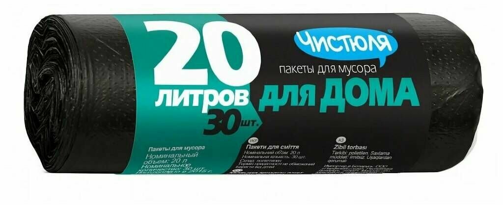 Пакеты Чистюля для мусора прочные 20 л (МС004)
