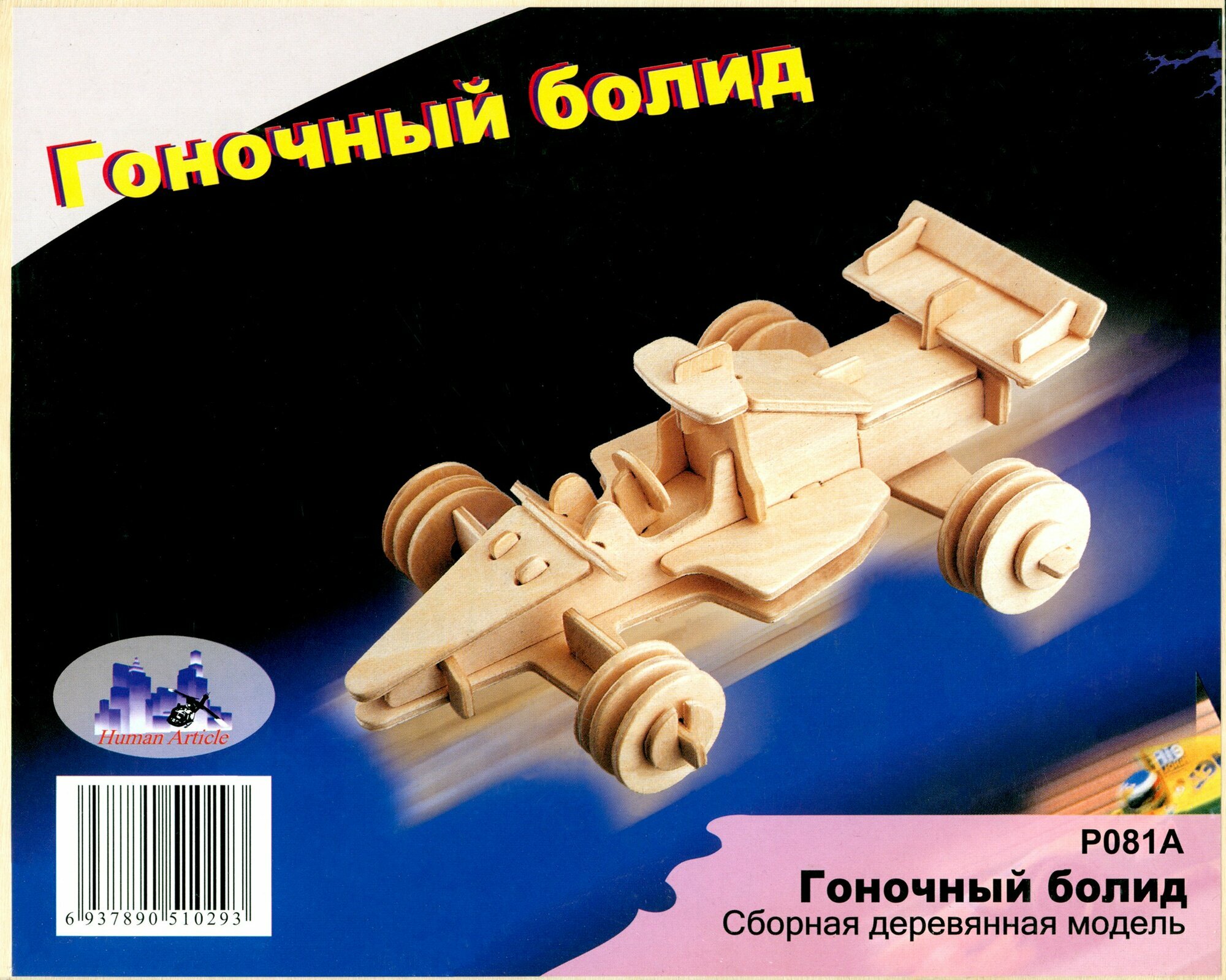 Сборная деревянная модель Wooden Toys Гоночный болид малый (P081A)