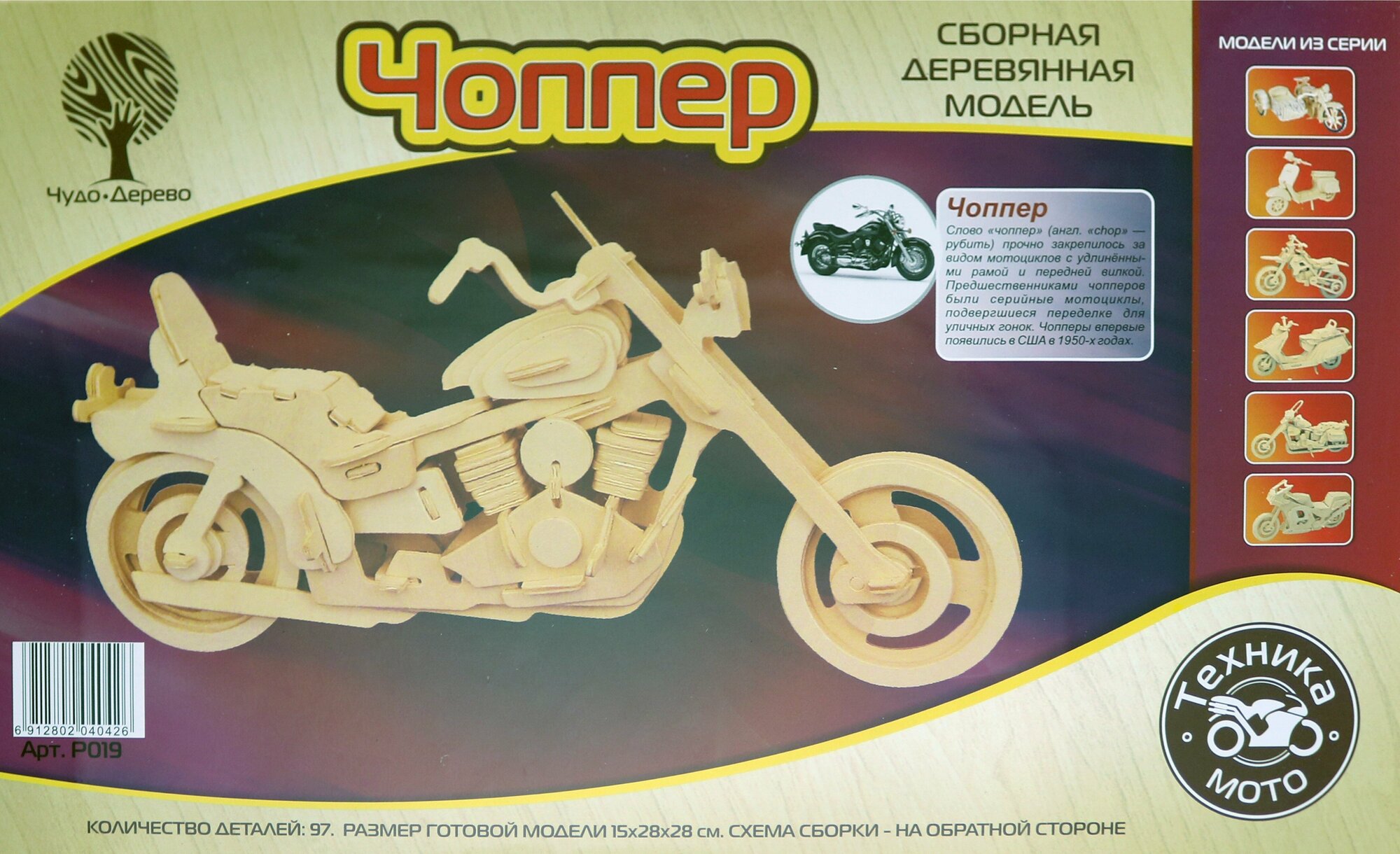 Сборная деревянная модель Wooden Toys Чоппер (P019)