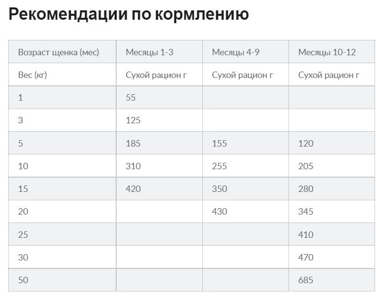 | Возраст | Щенки (до 12 мес.) |