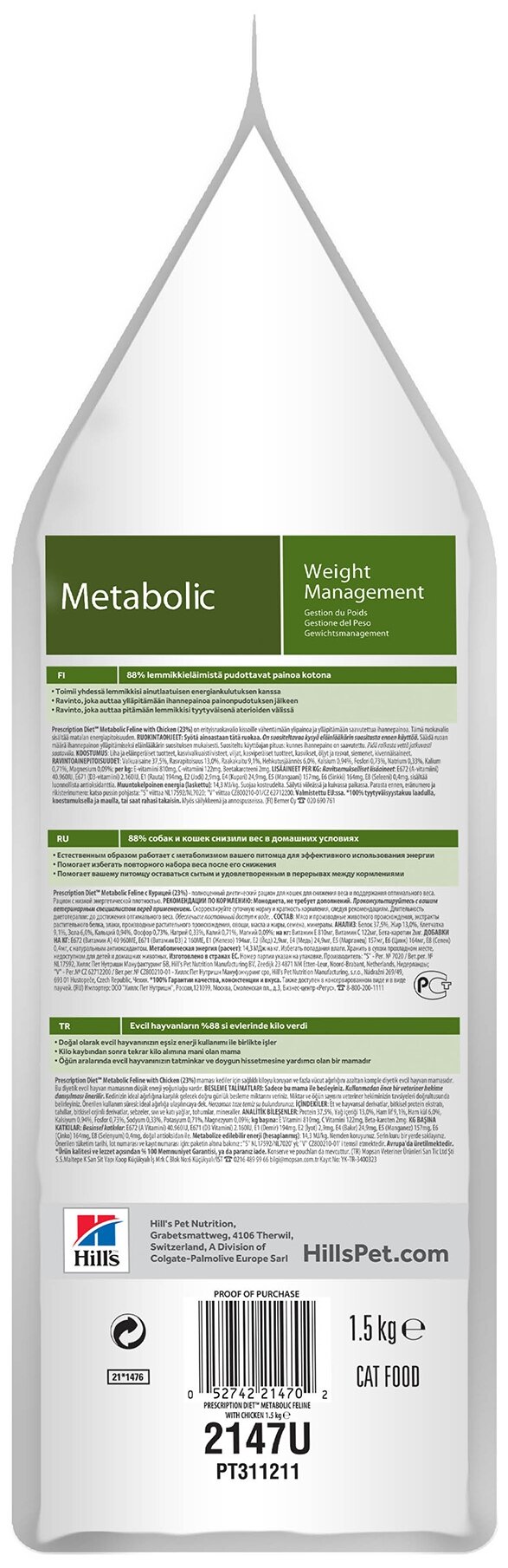 Сухой диетический корм Hill's Prescription Diet Metabolic для взрослых кошек при ожирении и склонности к ожирению мясное ассорти 1.5кг (37553)