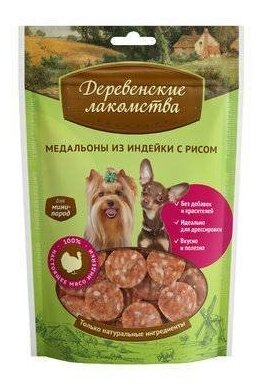 Лакомство Деревенские лакомства Медальоны для взрослых собак мини-пород индейка/рис 55г (58065)