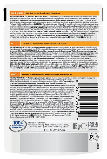 Hill's Корм для кошек Кормление Presc ription Diet™ Feline c/d™ Multicare курица облегчает поддержание здоровья мочевыводящих путей и снижает риск повторного образования камней после их успешного расстворения. Направлен на 4 основные причины возникновения заболеваний нижнего отдела мочевыводящего тракта: идиопатический цистит, струвитные, оксалатные камни и уретральные пробки). Расстворяет стерильные струвитные уролиты уже через 14 дней. Поддерживает здоровье почек благодаря пониженному содержанию соли.