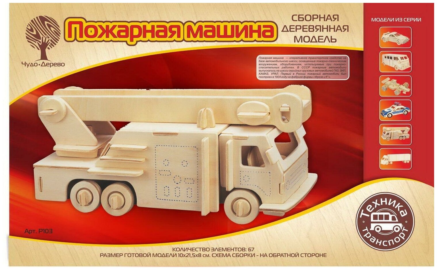 Сборная деревянная модель Wooden Toys Пожарная машина (P103)