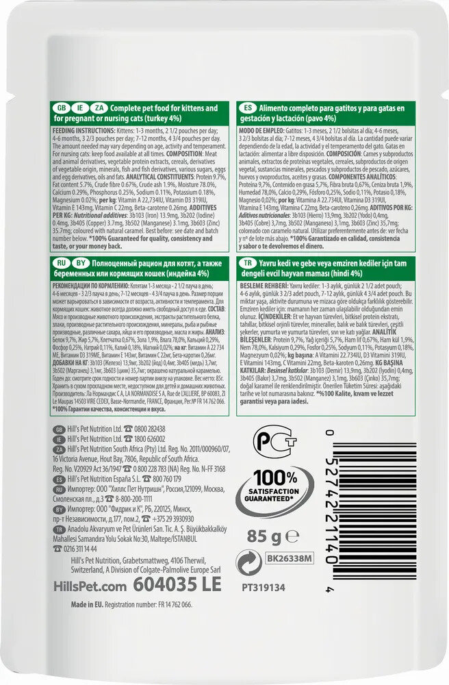 Влажный корм Hill's Science Plan Healthy Development (Гармоничное развитие) для котят индейка 85г (37335)