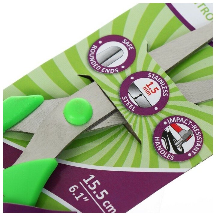 Ножницы из нержавеющей стали, безопасные закругленные концы лезвий. Эргономичная форма колец.