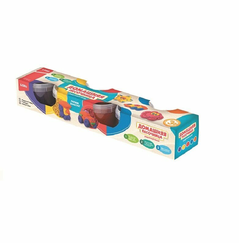 С помощью набора для детского творчества Lori "Домашняя песочница" ваш ребенок самостоятельно сможет вылепить множество поделок из цветного песка. В набор входит все, что для этого необходимо: 5 баночек с песком фиолетового, желтого, розового, голубого, оранжевого цветов, формочка. Песок не высыхает и не застывает на воздухе и отлично подходит для лепки плоских и объемных фигур. Перед лепкой необходимо хорошо размять песок. Цвета легко смешиваются. Песок не пристает к рукам во время лепки.