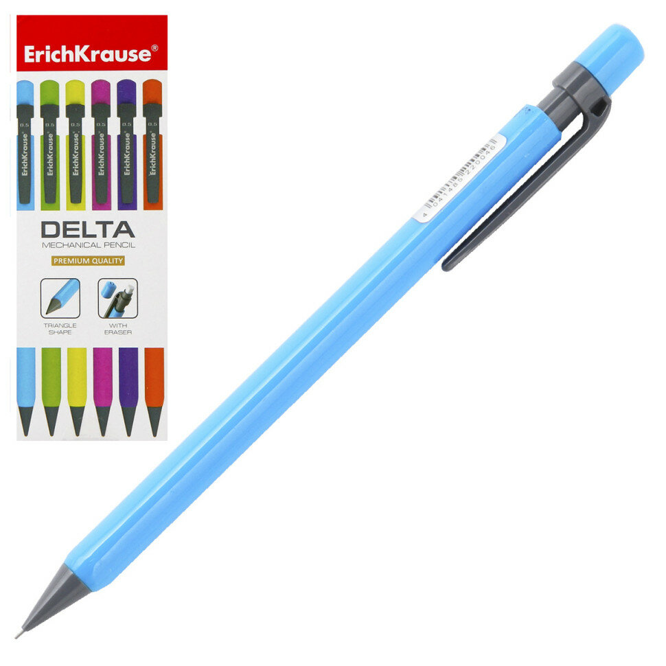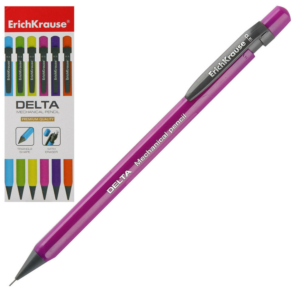 Механический карандаш эргономичной формы с ластиком, закрывающимся колпачком и удобным клипом. Корпус выполнен в ярких неоновых цветах. Твердость HB. Диаметр грифеля - 0.5 мм. Модель Delta стала абсолютным бестселлером в ассортименте механических карандашей Erich Krause более чем в шестидесяти странах мира.