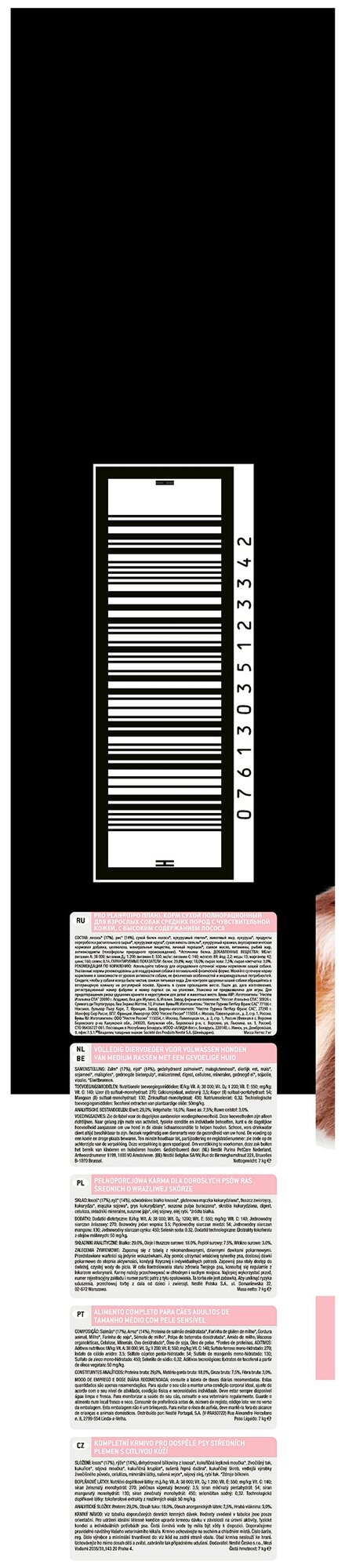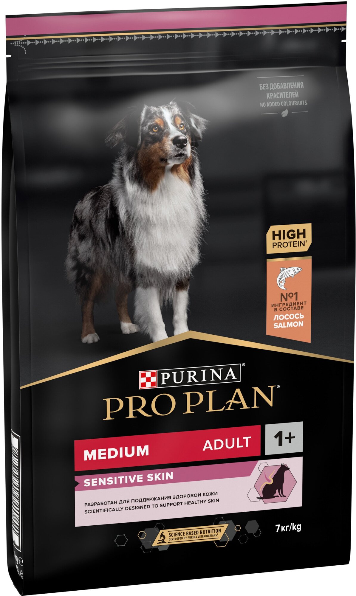 Разработанный нашими ветеринарами и диетологами корм Purina PRO PLAN с комплексом OPTIDERMA обеспечивает самое современное питание, которое поддерживает чувствительную кожу взрослых собак. Подтверждено, что OPTIDERMA включает в себя специальную комбинацию питательных веществ, которые поддерживают здоровье кожи и красивую шерсть, а отобранные источники белка помогают сократить возможные кожные реакции, связанные с пищевой чувствительностью. Специально отобранные источники белка для собак с чувствительной кожей. Сочетание основных питательных веществ, которое помогает поддерживать здоровье суставов вашей собаки при активном образе жизни. Клинически подтверждено: поддерживает здоровье кожи. Содержит высококачественный белок из лососяИспользуйте таблицу для определения суточной нормы кормления вашей собаки. Указанные нормы рекомендованы для поддержания собаки в оптимальной физической форме. Меняйте суточную норму кормления в зависимости от уровня активности собаки, ее физических особенностей и индивидуальных потребностей. Следите, чтобы у собаки всегда была чистая, свежая питьевая вода. Для контроля здоровья вашей собаки обращайтесь в ветеринарную клинику на регулярной основе.