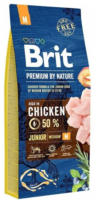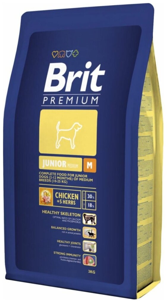 Корм сухой Brit Premium для щенков средних пород – состав, разработанный специально для растущего организма. Изготовлен на основе натуральных ингредиентов, он обогащен белками, незаменимыми жирными кислотами, комплексом витаминов и микроэлементов. Благодаря особой формуле, он полностью усваивается организмом и способствует укреплению иммунитета, формированию мышечной, костной и суставной ткани.ОсобенностиПодушечки имеют компактные размеры, приятный аромат и гармоничный для питомца вкус. Они легки в захвате, не вызывают сложностей при раскусывании.Благодаря белкам высокой степени усвояемости, корм отличается питательностью. Он пополняет организм энергией, способствует развитию и росту скелета, мышц. Хондроитин позволяет укреплять суставы питомца.Большое количество жирных кислот натурального происхождения (Омега-3 и Омега-6) способствует гармоничному развитию и деятельности головного мозга, эластичности кожных и шерстных покровов.Для предотвращения обезвоживания и нормального пищеварения животного обязательно обеспечивайте доступ к свежей питьевой воде.Чтобы правильно подобрать объемы порций для собаки в соответствии с состоянием ее здоровья, а также предотвратить перекорм, рекомендуется подобрать меню совместно с ветеринаром.