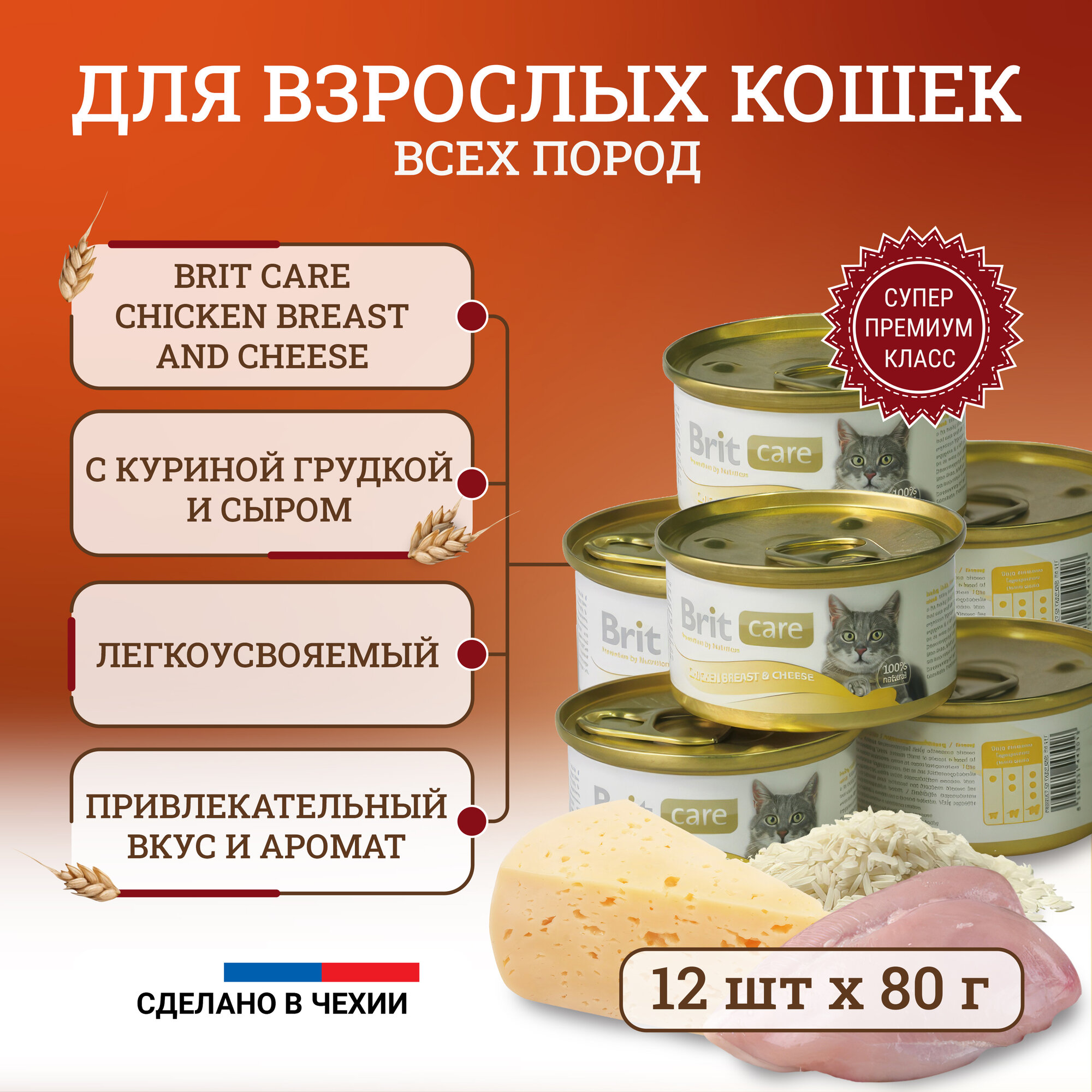 Влажный корм Brit Care для взрослых кошек куриная грудка/сыр 80г (19540)