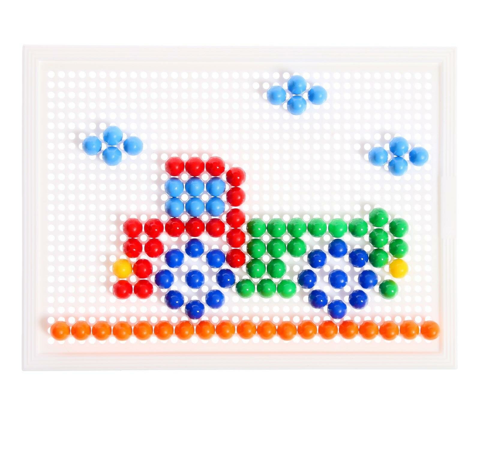 Мозаика с яркими разноцветными элементами изготовлена из качественных материалов.