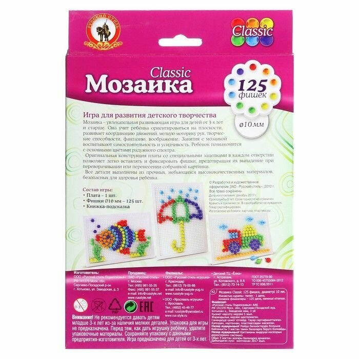 На сегодняшний день товар «Мозаика классическая Русский Стиль Classic 125 эл 10 мм (3974)» можно купить с кешбеком в 1 магазине: Яндекс.Маркет