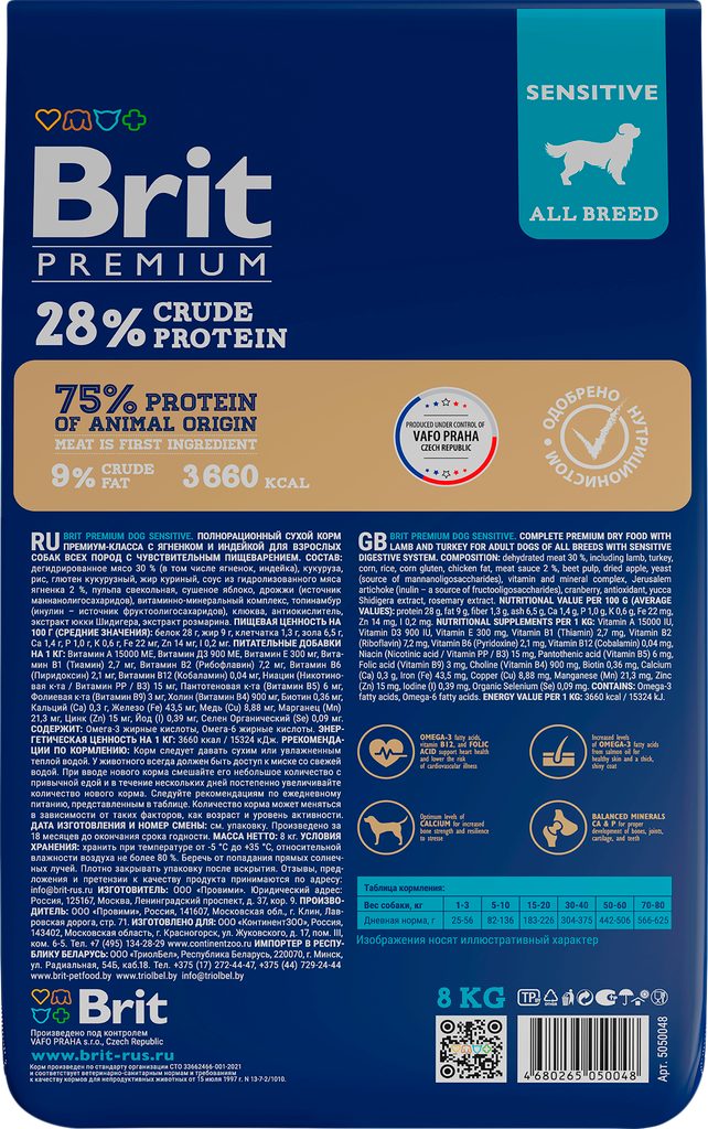 Brit Premium Lamb&Rice - Сухой гипоаллергенный корм с ягнёнком и рисом для взрослых собак всех пород Полнорационный гипоаллергенный корм для собак с чувствительным пищеварением, склонных к пищевой аллергии и собак с проблемами кожи. Инструкция по кормлению: корм давать сухим или слегка увлажненным. У собаки всегда должен быть свободный доступ к свежей питьевой воде. Ежедневные потребности в питании вашей собаки могут отличаться в зависимости от размера, возраста, уровня активности и внешней среды.