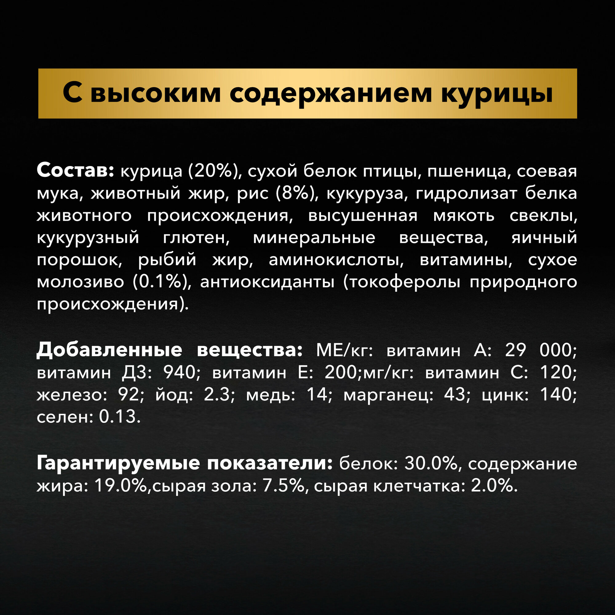 Первый год жизни вашей собаки (или два года для щенков крупных пород) имеет решающее значение для их здоровья в дальнейшем. Чтобы помочь укрепить естественную защиту щенков в начале жизни, ветеринары и диетологи Purina разработали Purina PRO PLAN Puppy с комплексом OPTISTART. Комплекс OPTISTART, в состав которого входит особый ингредиент молозиво — первичное молоко матери, богатое природными антителами, помогает укрепить естественную защиту щенков для борьбы с ежедневными проблемами.Помогает развивающейся иммунной системе щенка действовать эффективно. Особое сочетание компонентов для здоровья зубов и десен. Сочетание основных питательных веществ, которое помогает поддерживать здоровье суставов вашего щенка при активном образе жизни. В состав корма входит специальный компонент для укрепления иммунитета и здоровья на долгие годы. Содержит кусочки высококачественного куриного мяса. С 3 по 6 неделю начинайте давать размоченный корм Pro Plan 3–4 раза в день. После полного прекращения кормления материнским молоком кормите согласно таблице. По достижении трехмесячного возраста постепенно снижайте количество воды, добавляемой для размачивания корма. Поддержание оптимальной массы тела очень важно для здоровья вашего щенка. Рекомендуемая суточная норма может варьироваться в зависимости от уровня активности, физических особенностей и индивидуальных потребностей вашего щенка. Следите, чтобы у собаки всегда была чистая, свежая питьевая вода. Для контроля здоровья вашей собаки обращайтесь в ветеринарную клинику на регулярной основе.