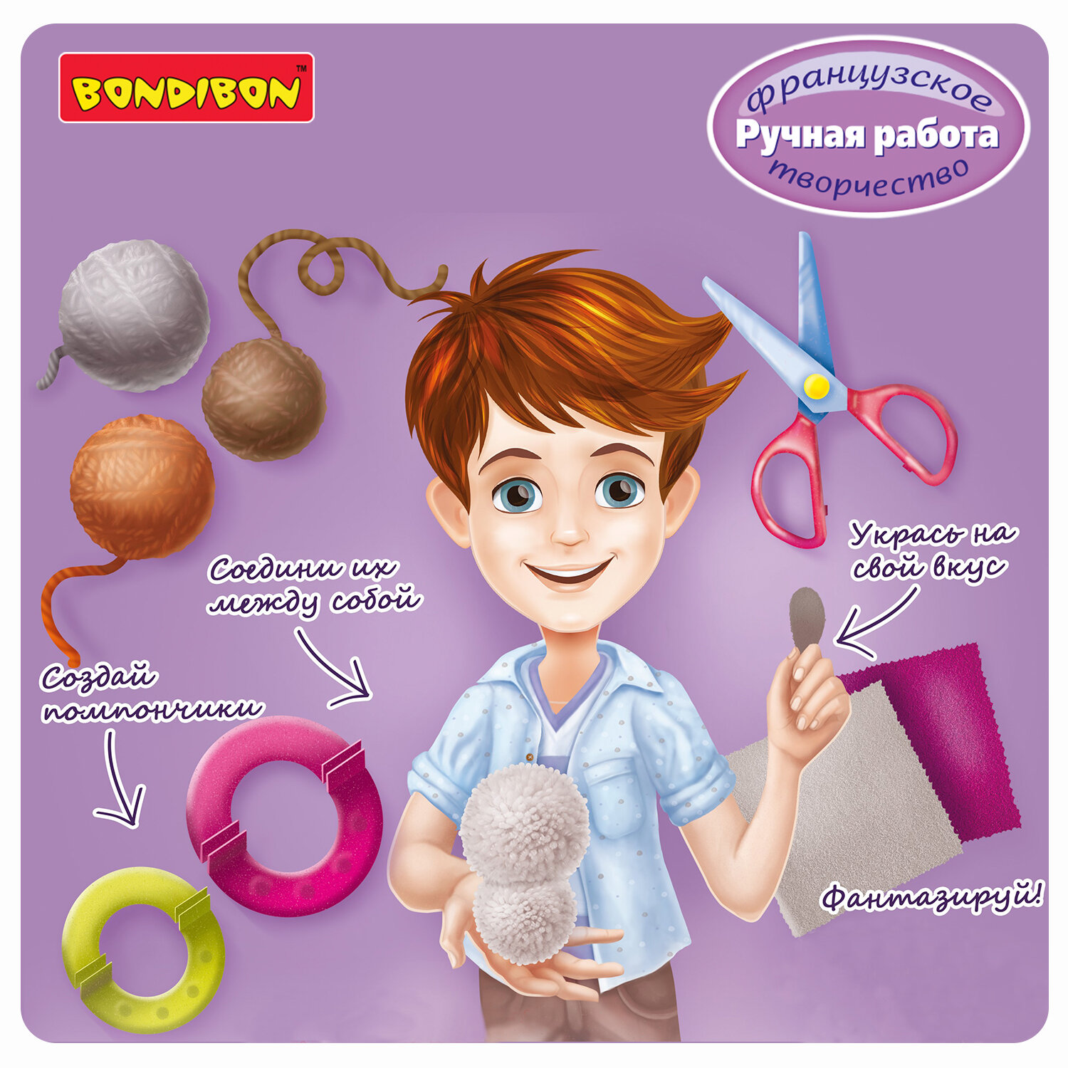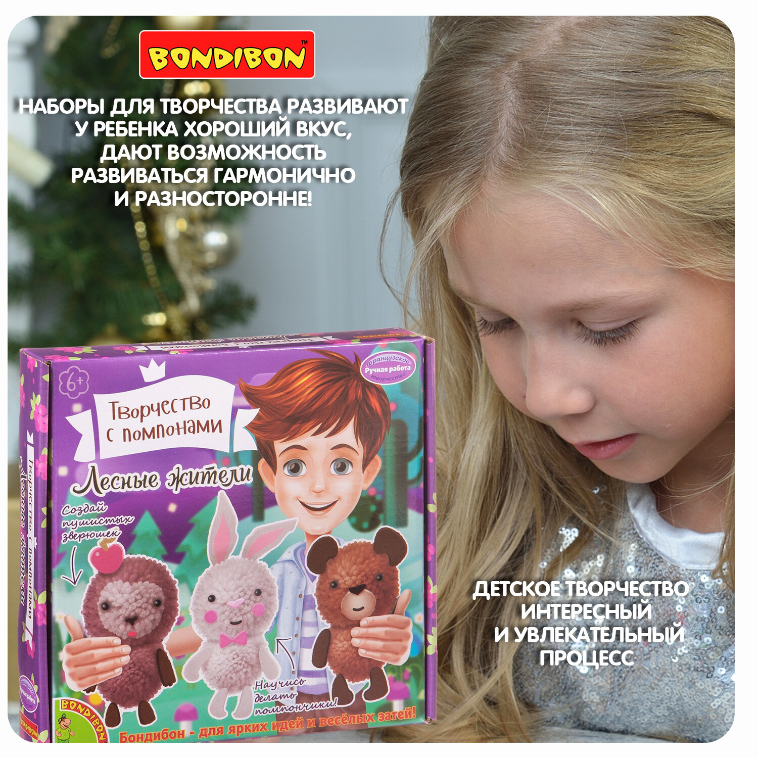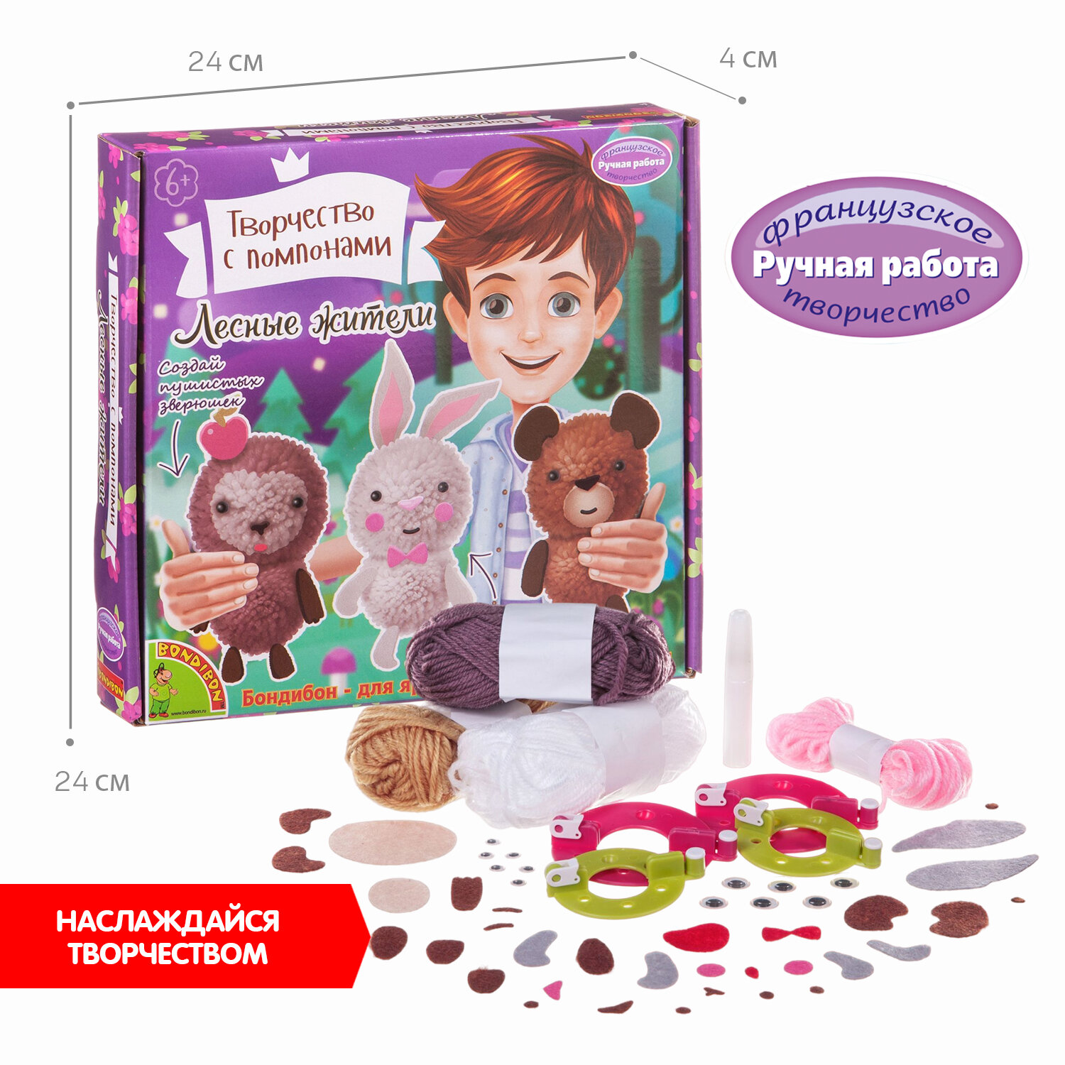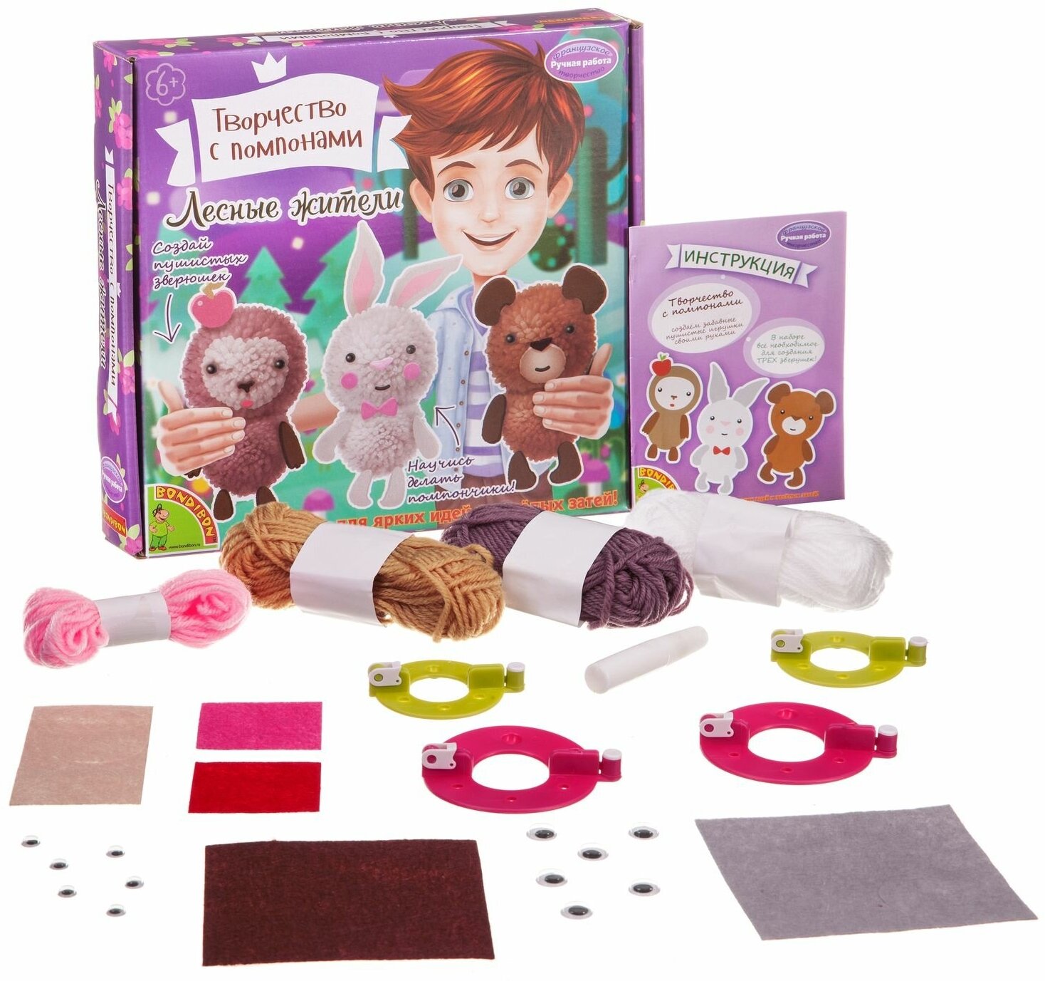 Bondibon Набор для творчества Творчество с помпонами Лесные жители Впервые получив серьёзное распространение во Франции, помпоны продолжают своё победное шествие по миру Если раньше их использовали в качестве украшений одежды или военных знаков отличия, то сегодня им находят применение в самых разных сферах, например при воспитании и обучении детей Из помпонов довольно легко изготовить яркую игрушку, а дальше её можно использовать как в образовательном процессе, так и для игры. Когда интерес к игрушке пропадёт, она станет отличным украшением детской комнаты Bondibon предлагает вам прикоснуться к этому удивительному миру с помощью серии Творчество с помпонами В составе набора есть все необходимое: пластиковые зажимы для создания помпонов двух размеров, разноцветная пряжа, элементы украшения и инструкция с секретами мастерства.