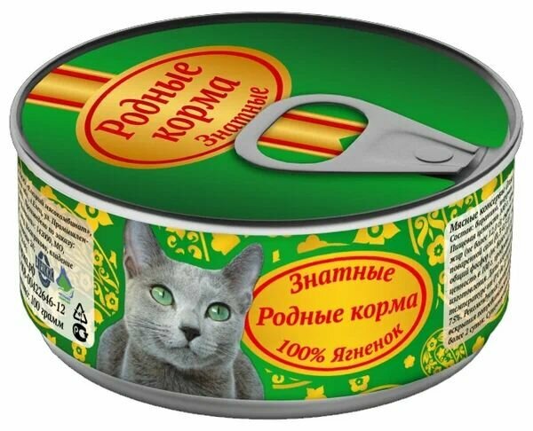 Влажный корм Родные корма Знатные для взрослых кошек ягненок 100г (62151)