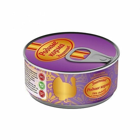 Влажный корм Родные корма Знатные для котят индейка с потрошками 100г (62147)