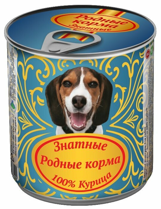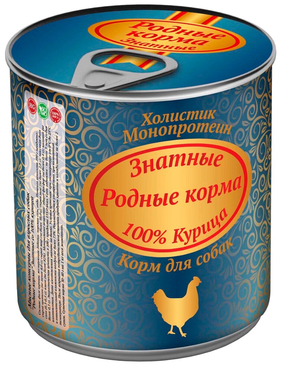 Влажный корм Родные корма Знатные для взрослых собак курица 340г (62159)
