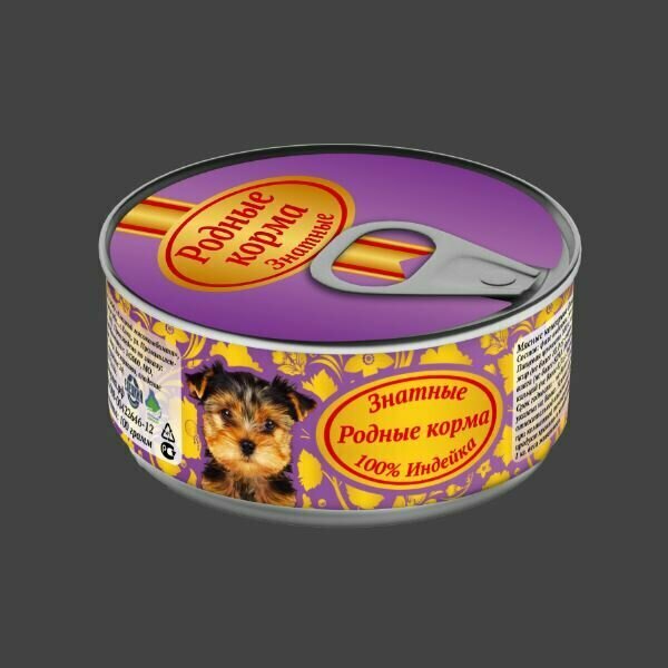 Влажный корм Родные корма Знатные для взрослых собак индейка 100г (62152)