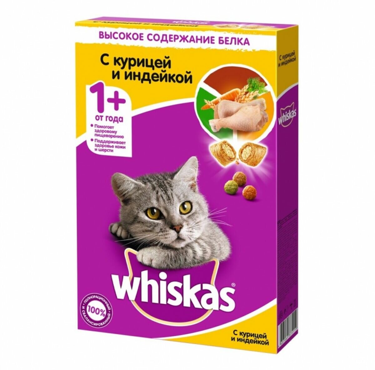 Whiskas сухой рацион для взрослых кошек в виде хрустящих подушечек с нежным мясным паштетом из курицы и индейки. Сухой корм "Whiskas" является полнорационным сбалансированным питанием для взрослых кошек. Корм содержит специально разработанную комбинацию витаминов и антиоксидантов, поддерживающую иммунитет вашего любимца. Новый комплекс создан с учетом специфических особенностей физиологии кошек. Корм не содержит искусственный ароматизаторов и искусственных усилителей вкуса.