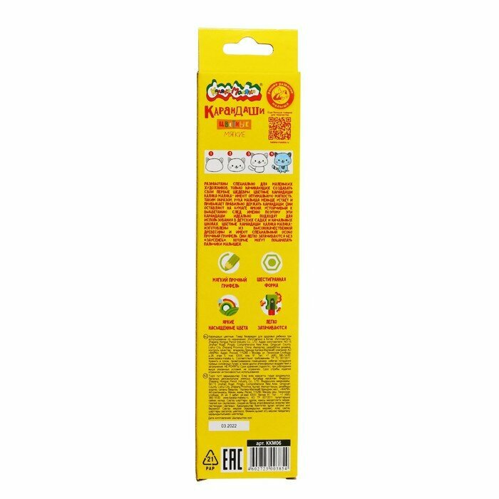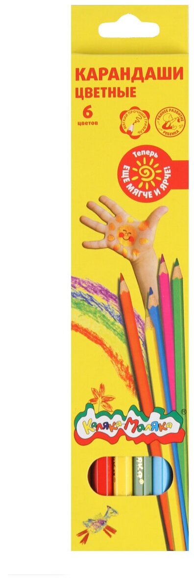Каляка-Маляка Набор цветных карандашей 6 цветов, шестигранные с заточкой, арт. Разработаны специально для маленьких художников, только начинающих создавать свои первые шедевры. Цветные карандаши Каляка-Маляка имеют оптимальную мягкость, таким образом, рука ребенка меньше устает и привыкает правильно держать карандаши. Они оставляют на бумаге яркий, устойчивый к выцветанию след. Именно поэтому эти карандаши идеально подходят для использования в детских садах и начальных школах.